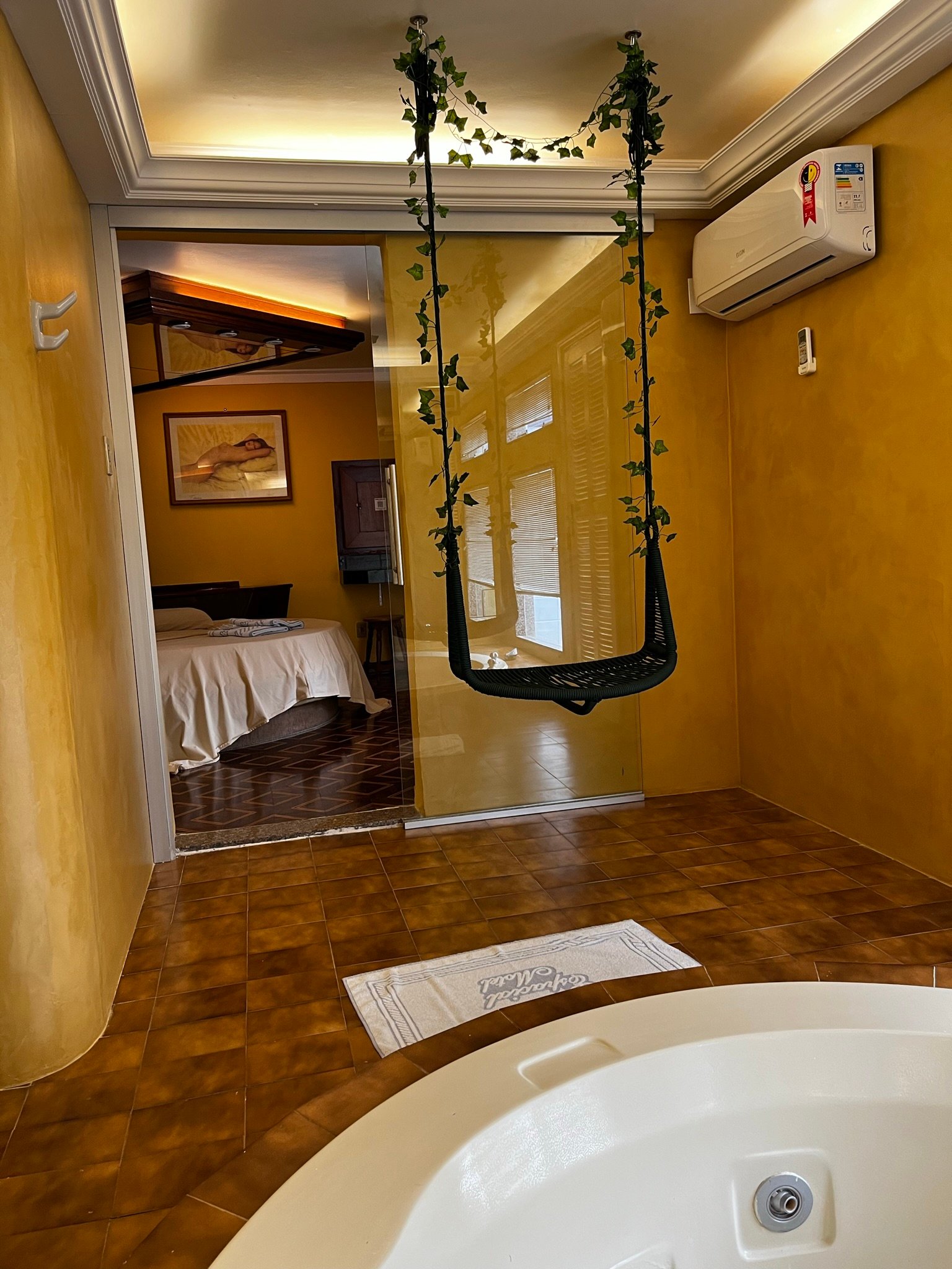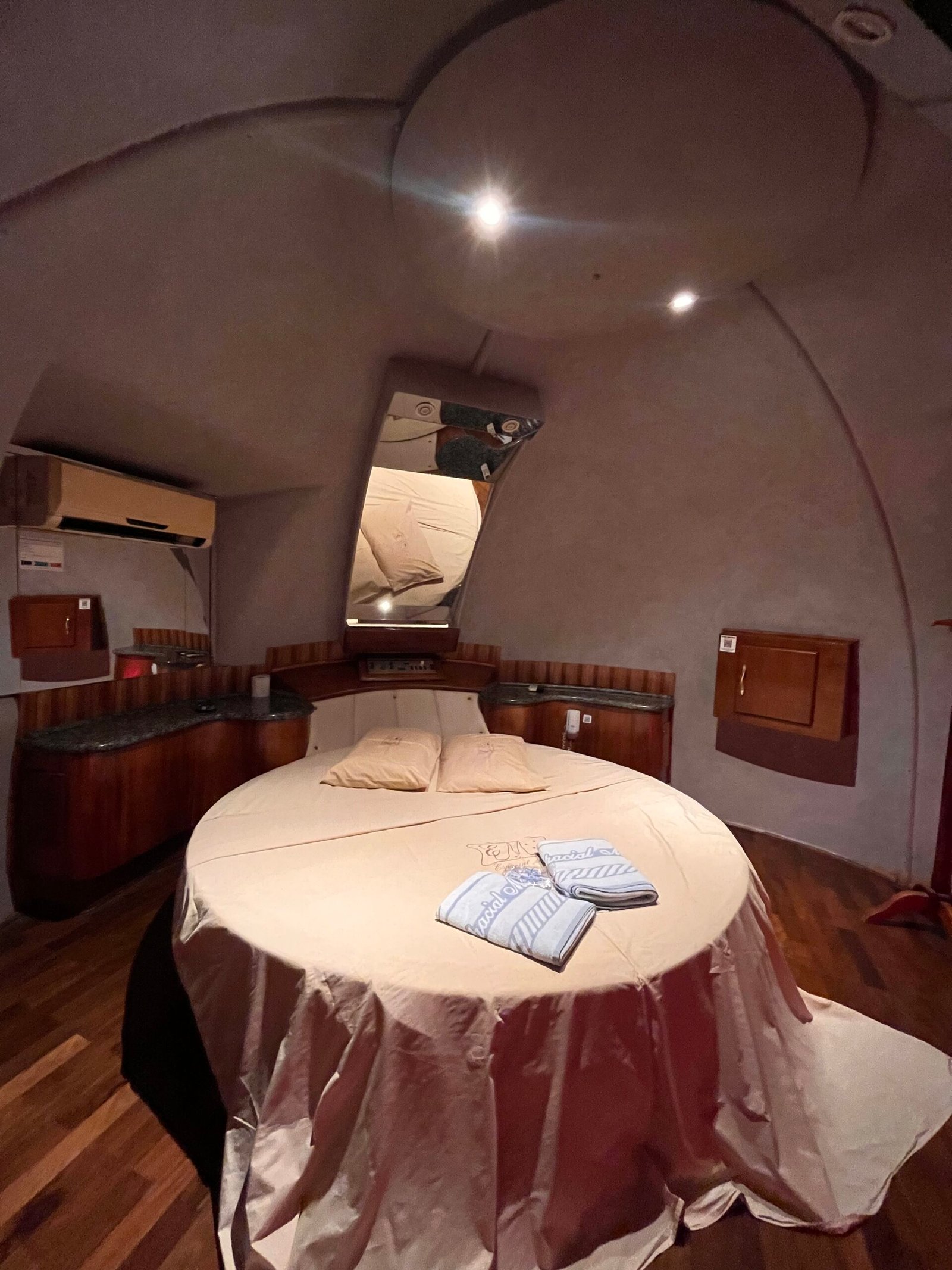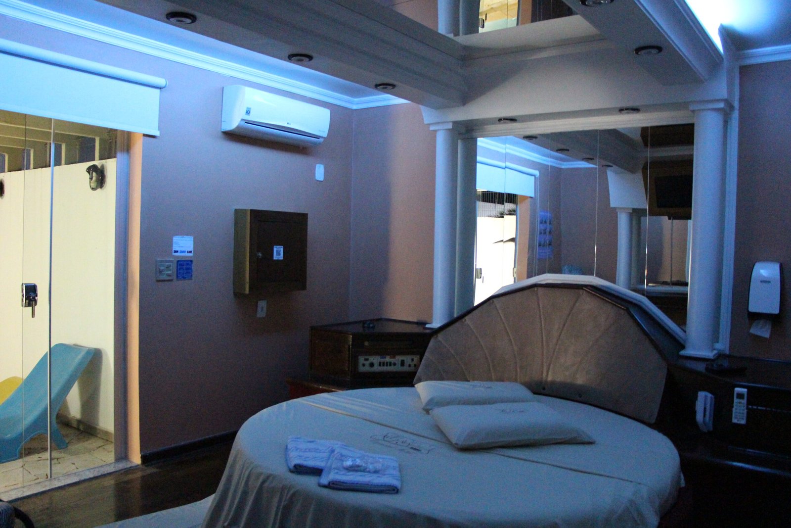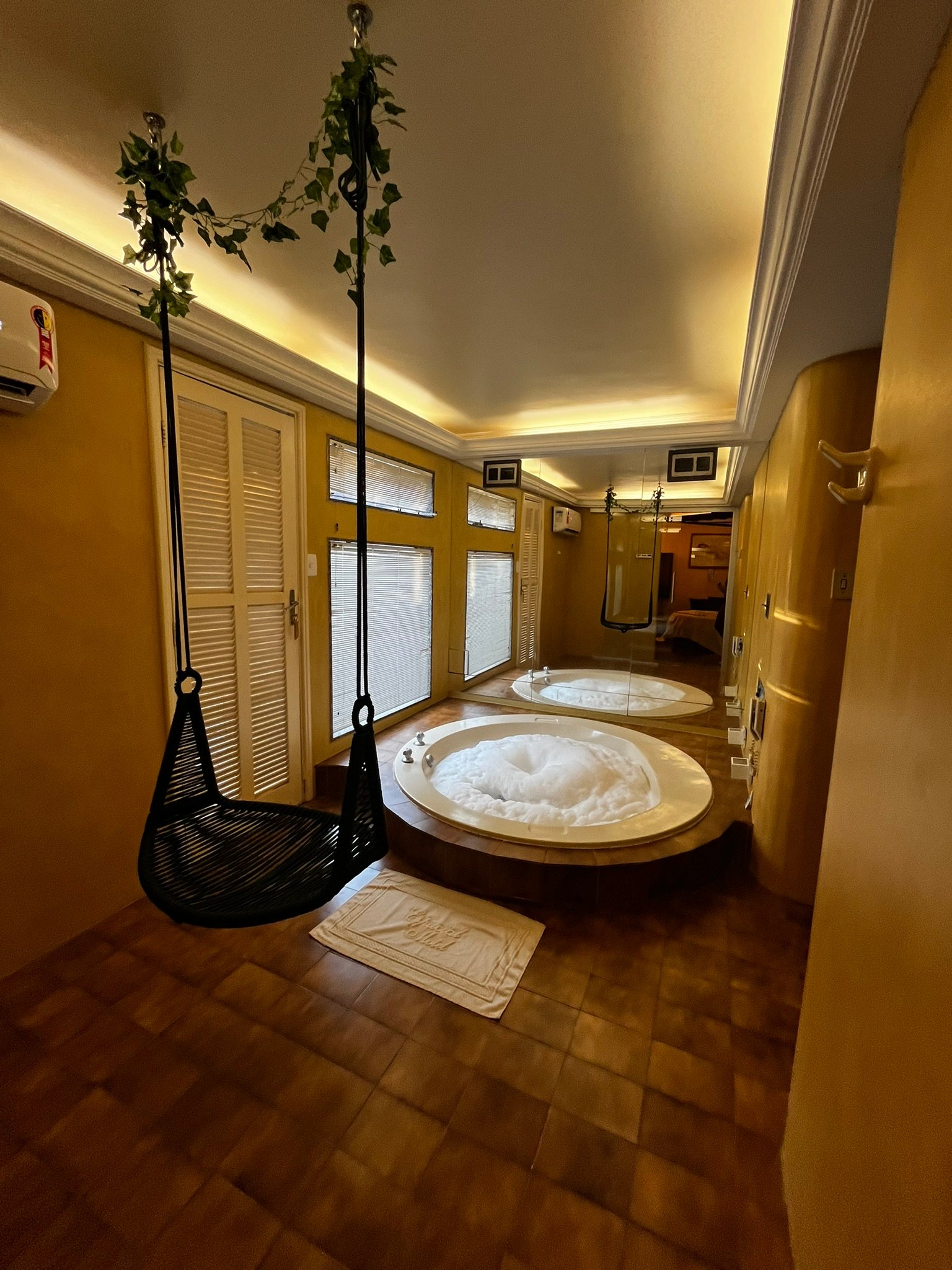 O nosso famoso “igluzinho” tem cama redonda no quarto com ar condicionado split, TV à cabo com cine privé, circuito interno de músicas além de FM, amenities para banho e garagem privativa com portão elétrico.