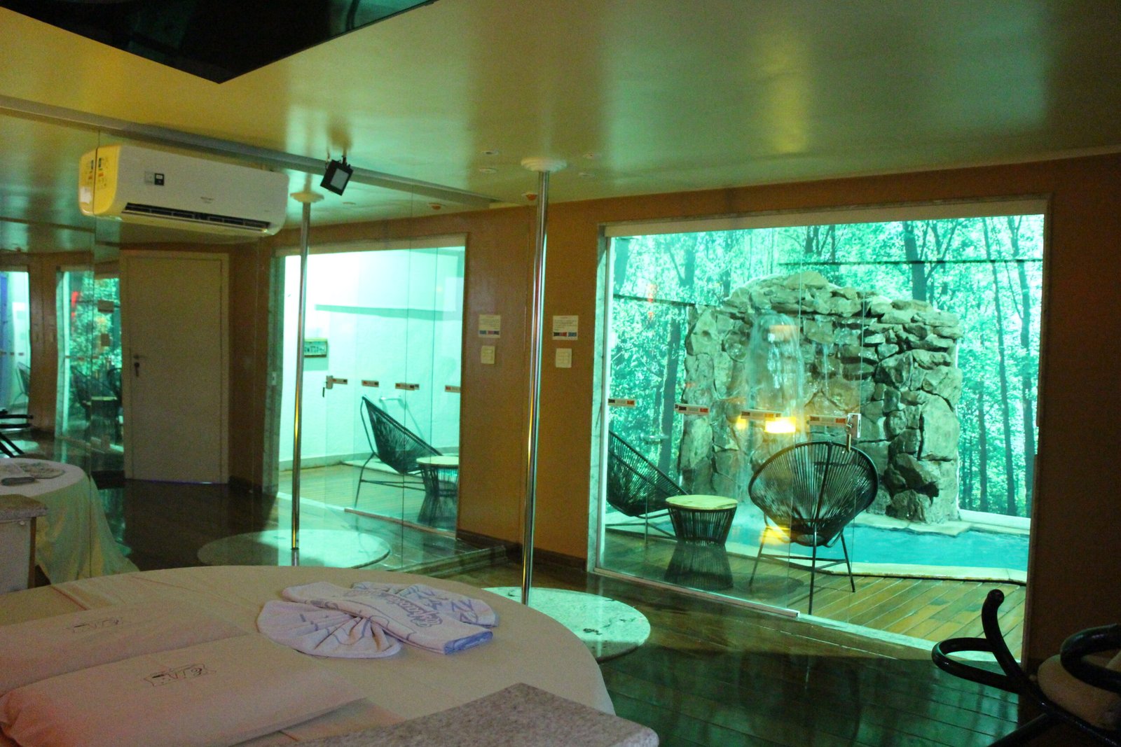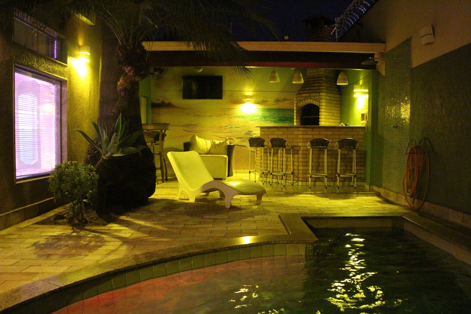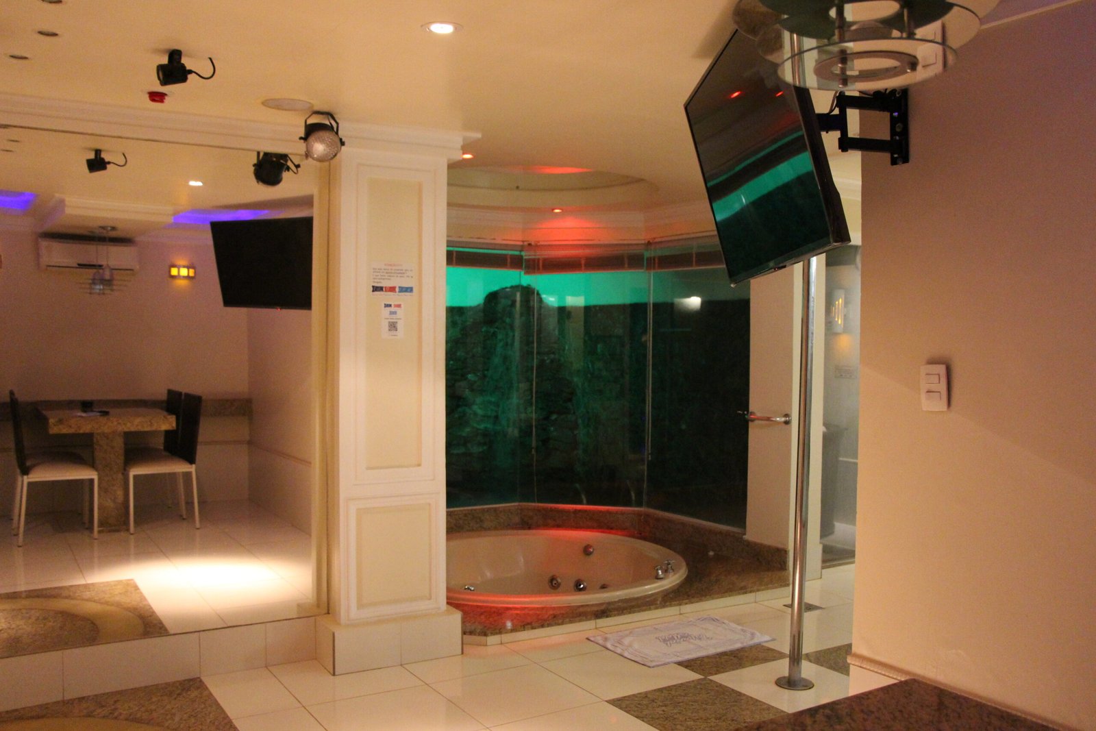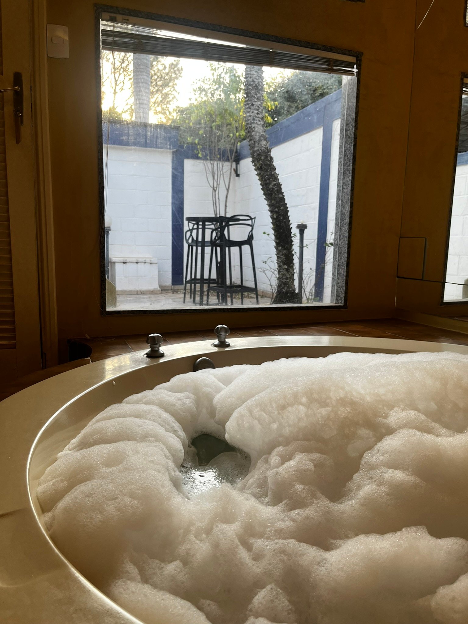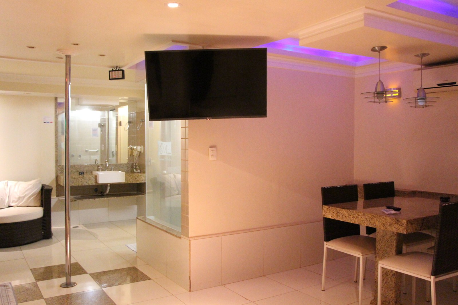 O nosso famoso “igluzinho” tem cama redonda no quarto com ar condicionado split, TV à cabo com cine privé, circuito interno de músicas além de FM, amenities para banho e garagem privativa com portão elétrico.
